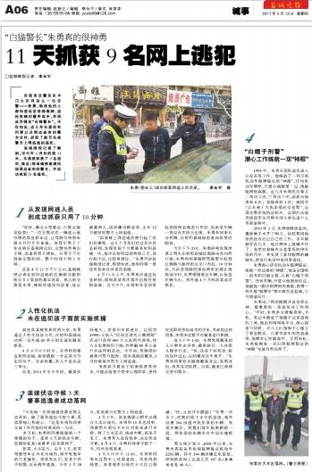 盐城晚报记者了解到,仅今年4月份的前11天,朱勇就抓获了9名逃犯,推送(将准确信息提供给周边省市的警方,并成功抓获)5名逃犯。