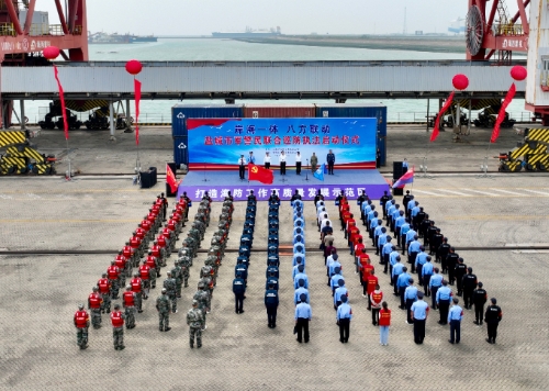 5月17日上午10时,随着一声令下,汽笛声、警笛声、直升机轰鸣声响彻滨海港,由公安、海事、农业农村、海警等涉海执法部门组成的150余人执法力量陆续登上执法船艇和执法车队,以“岸海一体、八方联动”为主题的盐城军警民联合巡防执法活动正式启动。