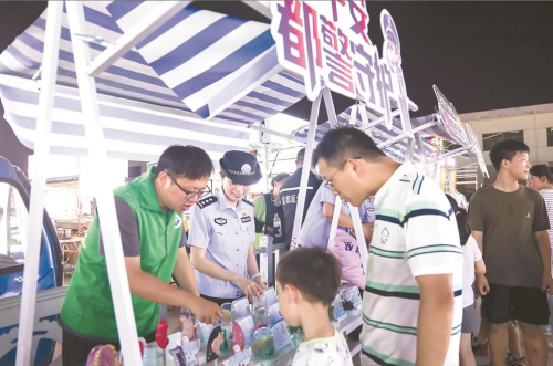 居民在哪里,宣传就覆盖到哪里。盐都公安将“巡”与“宣”有机结合,在繁华商圈、夜市设置“平安普法点”,把宣传融入执勤、把防范送到身边,在烟火气最浓、人流量最大的地方架起“平安桥梁”,营造全民参与平安建设的浓厚氛围。在飞亚夜市,警民互动的“平安摊位”热闹“开张”——反诈知识、交通安全提示、禁毒宣传折页一应俱全,警民互动小游戏吸引不少市民驻足,让市民在品尝各式美味的同时,也能轻松地学到实用的安全防范知识。